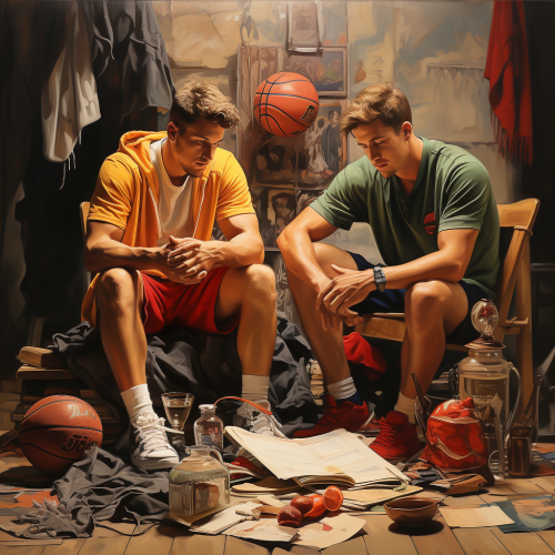 college roommates all over 7ft tall; I am cleaning their US size 16 sneakers for their basketball; all of us love this; they are muscular and alpha male looking; they all stand or sit; I am knee on the floor. 8k and realistic. Make details in slow speed. --s 750