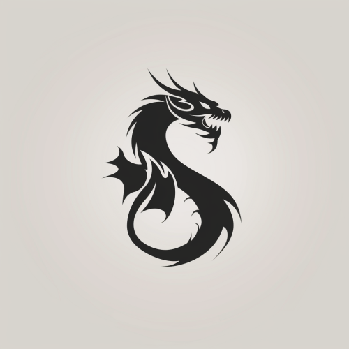vector logo of a full dragon body with long curved tail, the eyes are large , graphic design, minimalist stroke lines, black and white, abstract --stylize 250 --v 6.0