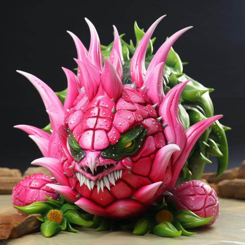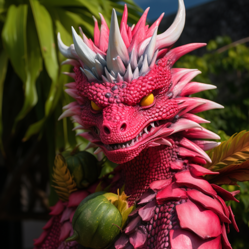 dragon fruit cosplay China dragon, realistic description, full color, graphic design