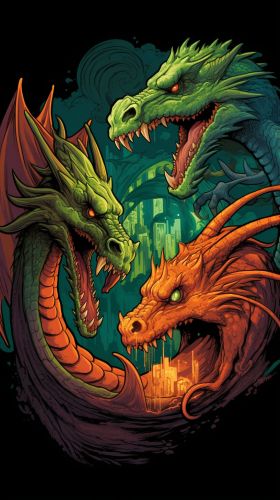 Create a high-resolution 16k graphic design for a tee shirt that does not include the tee shirt itself, reflecting the theme "I speak fluent Dragon and Goblin." The design should feature a majestic dragon and a mischievous goblin engaged in animated conversation, with speech bubbles containing ancient runes and symbols representing their unique languages. The medium should be photo hyper-realism, with a style that combines elements of high-fantasy art and contemporary graphic design, drawing inspiration from artists like Brian Froud and modern graphic designers. The lighting should be ethereal, highlighting the intricate details of the dragon and goblin, and the color palette should include vibrant greens, fiery reds, and deep blues, creating a visually striking and harmonious composition. The composition should be dynamic, with the dragon and goblin positioned to reflect their interaction and the speech bubbles strategically placed to emphasize the theme. --ar 16:9 --v 5.1 --s 750