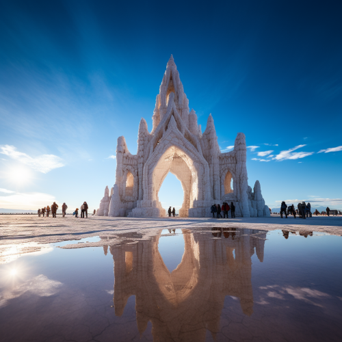 El "Templo Celestial de Uyuni: Exploración Cósmica y Vida Terrestre" presenta una arquitectura única que fusiona elementos de exploración espacial y la belleza natural de la Tierra. Aquà se describe su diseño: Forma Ecléctica: La estructura principal combina una cúpula geodésica de vidrio con elementos orgánicos que se asemejan a las formas de cristales de sal naturalmente encontrados en el Salar de Uyuni. Esta fusión representa la interacción entre el cosmos y la Tierra. Transparencia y Conexión: Las paredes de vidrio transparente permiten la entrada de luz natural y vistas panorámicas del entorno, incluido el Salar de Uyuni. Esto crea una sensación de continuidad entre el templo y la naturaleza circundante. Sostenibilidad: El diseño incorpora tecnologÃas sostenibles, como sistemas de energÃa solar y recolección de agua de lluvia, respetando y protegiendo el medio ambiente. Cúpula de Observación: En la parte superior del templo, una cúpula de observación acristalada alberga telescopios avanzados y plataformas de observación que brindan vistas espectaculares del cielo nocturno, lo que enfatiza la exploración cósmica. Espacios Multifuncionales: El interior del templo incluye áreas de exposición interactivas que combinan la ciencia de la exploración espacial con la apreciación de la vida terrestre. También hay salas de meditación y reflexión que invitan a la contemplación de la conexión entre la Tierra y el cosmos. ArmonÃa con el Entorno: El templo se integra armoniosamente con el paisaje del Salar de Uyuni, utilizando materiales locales y respetando la topografÃa natural. Iluminación Nocturna: Durante la noche, el templo se ilumina sutilmente, destacando su presencia en el salar y creando un ambiente mágico y espiritual. En conjunto, la arquitectura del Templo [...]