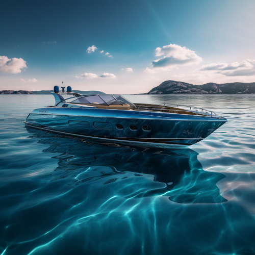 luxury riva boat in mediterennean blue water, hyper realistic, 8k, epic, cinematic