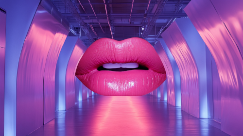 Image color Nature,Natural beauty events, large venues, Central runway, bright aisles, giant objects such as lipsticks, parties for beauty-related companies, cosmetic motifs, elegant high brands, --ar 16:9