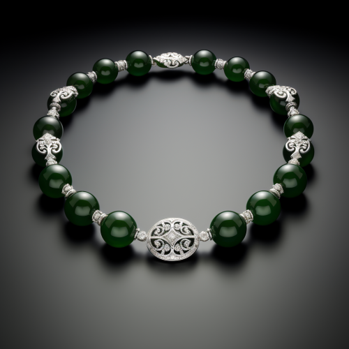 In the captivating ZBrush format, envision an exquisite jade necklace that combines the richness of deep green jade beads with delicate platinum or silver embellishments. Each carefully selected jade bead radiates a lush green hue, evoking the vibrancy of nature. The beads are interspersed with intricately crafted small platinum or silver decorations, forming a seamless chain. At the heart of the necklace hangs a unique jade pendant, showcasing fluid curves and masterful sculpting. Drawing inspiration from nature, the pendant could take the form of a leaf, a flower, or a droplet, accentuating the natural beauty of jade. The chain links, crafted from platinum or silver, may feature tiny diamonds or small jade accents, imparting subtle flashes of brilliance. The design of the necklace emphasizes simplicity and refinement, allowing the inherent beauty of jade to take center stage. This is a basic description that you can use as inspiration. Feel free to further develop and adjust the design based on your preferences and aesthetic. If you have specific design elements or requirements, let me know, and I'll do my best to assist you further.