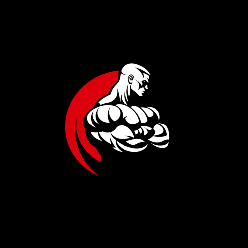 a logo for a bodybuilding coaching brand, not too modern or resebling autoparts, edgy and grundgy, easily read if it has words, not too bubbly, no flexing logo or anything cheesy like posing, camp mentality, high defenition, black red and white elements --v 6.1