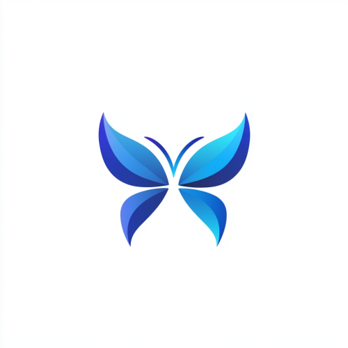 Create a minimalist, modern logo for a Transformational Coaching Program. The logo should include symbols of transformation, such as a butterfly or a rising path, and express positive energy and change. Use a color palette with calming tones like blue, turquoise, or violet, to evoke a sense of spirituality and trust. The design should be clean and professional, standing out well on a white background.