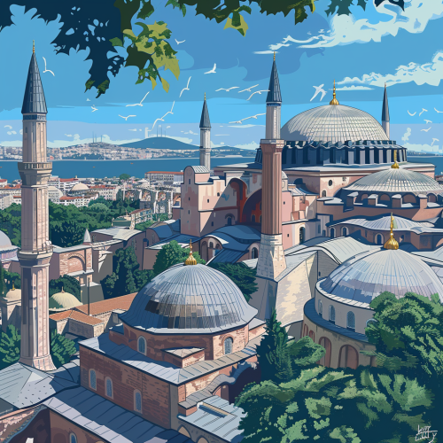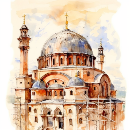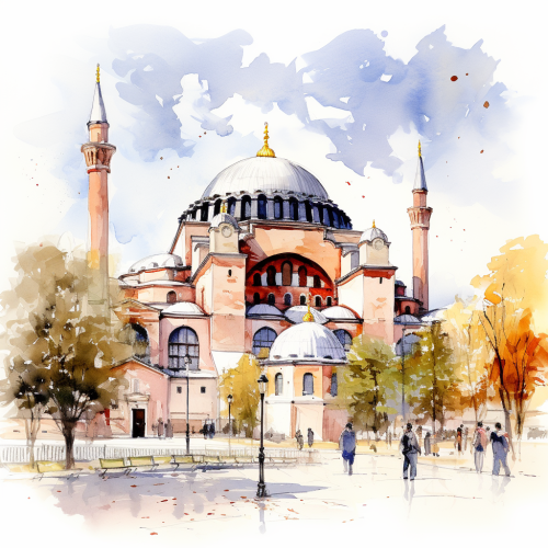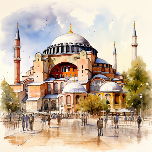 original hagia sofia church, no turrets, cross on top of dome, watercolor sharp edges hd