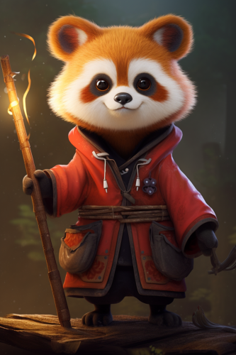 a cute red panda magical wizard, character design, concept art, animation, realistic, pixar, --ar 2:3
