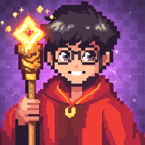upper body of a young wizard, smiling brightly, holding a short magic wand with a sparkling light at the tip, Bitcoin symbol in the background, pixel art style with Japanese animation elements, created specifically for a 32x32 pixel blog icon, colorful and expressive, featuring a detailed anime-style face and traditional wizard attire, the background is simple but clearly shows the Bitcoin symbol, --ar 1:1 --niji 5