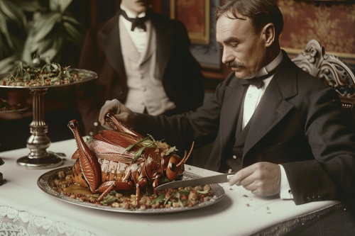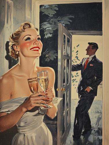 Cinematic of a dandy man in the 1910’s wearing a suit and an umbrella. He brings a bottle of champagne for the party, dancing on the roof over the london's skyline, classy, fashion campaign, sunset after rain, high detailed and realistic, 4k, taken with Canon eos r3, 35 mm, f/1.8 --ar 4:5 --v 6.0 --style raw --s 750