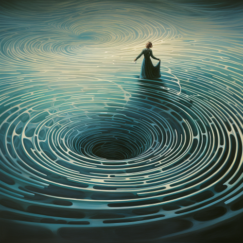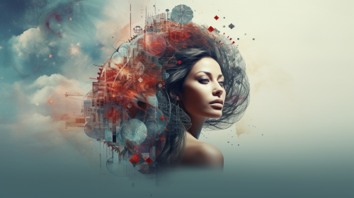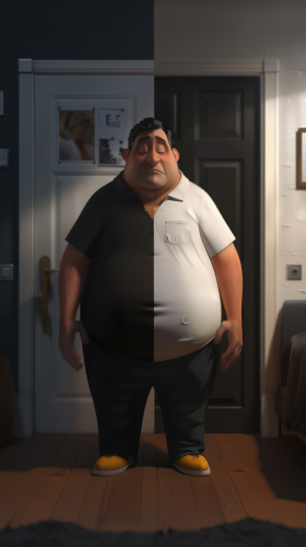 A concept of weight loss, depicting a fit woman emerging from her old, larger body. The slim woman is stepping out of the silhouette of her previous overweight form, symbolizing transformation and personal growth. The background is simple, keeping the focus on the contrasting body shapes, highlighting the theme of progress and change.