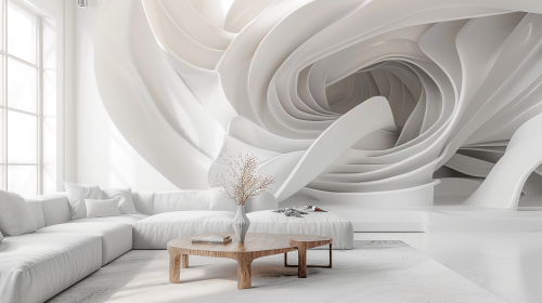 Wallpaper with a bright atmosphere based on white that expands the space and shows strong trust. --ar 16:9