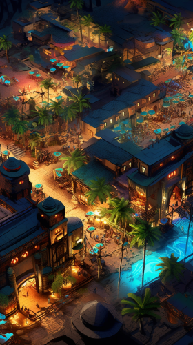 Egyptian landscape, top down view, high details, neon lights, game like, --ar 9:16 --v 5.1