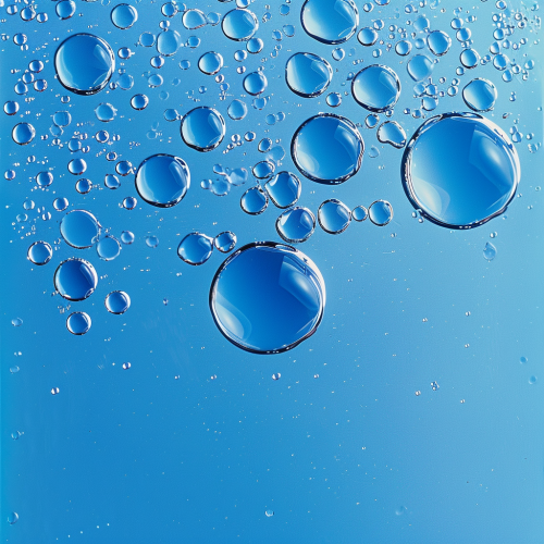A high-resolution image of transparent water droplets against a medium blue background, designed to be easily adaptable for overlaying additional images. The blue is balanced in tone, and the background is clean and evenly lit to ensure that it does not interfere with the inserted image. Droplets are high detail and transparent. Created Using: High-resolution, transparent droplets, adaptable blue background, clear lighting, manageable backdrop --v 6.0