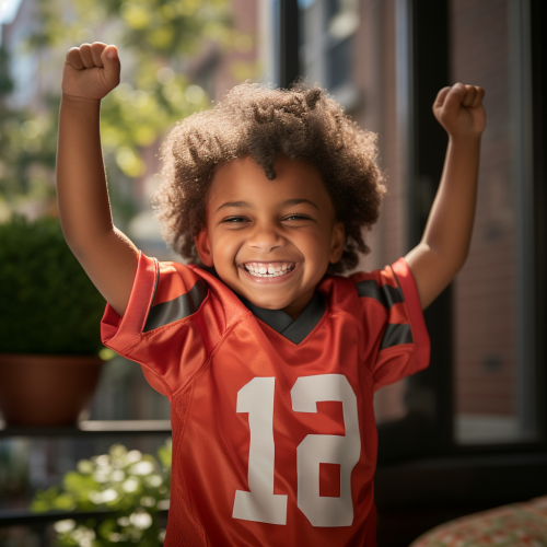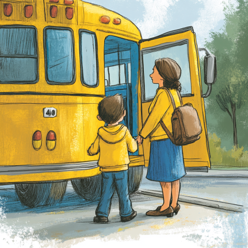 cartoon image of happy latino boy with his mom waiting in waiting room pixar style