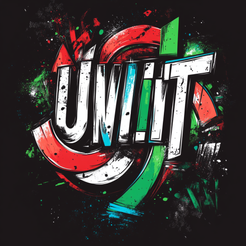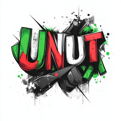 Design a bold, vibrant logo with the word ‘UNITY’ in 90s graffiti style. The letters should be thick, edgy, and dynamic, using the colors of the Palestinian flag--black, white, green, and red. Surround the word with abstract shapes and patterns typical of rave posters--think splashes, swirls, and geometric designs. Incorporate glowing effects and bold highlights, staying true to the iconic underground rave aesthetic, but with the colors symbolizing solidarity. The overall look should be energetic, rebellious, and full of movement, capturing the spirit of 90s street art with a powerful, purposeful message.