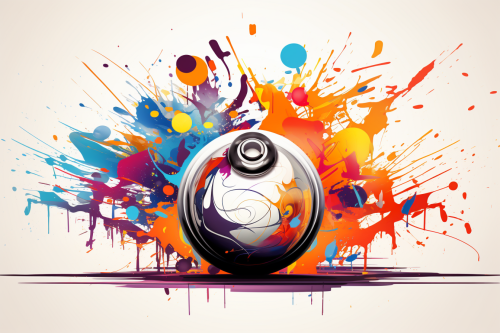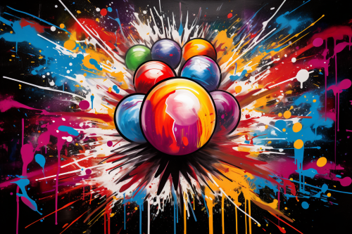 copyrighted image, abstract art grafitti design with drippings, there's a bowling ball and bowling pins in the center --ar 3:2