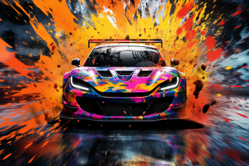 copyrighted image, abstract art grafitti design with drippings, there's racing car in the center --ar 3:2