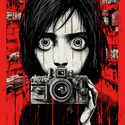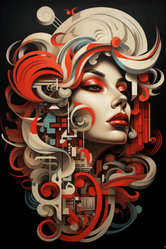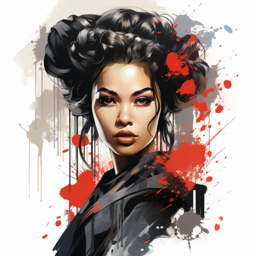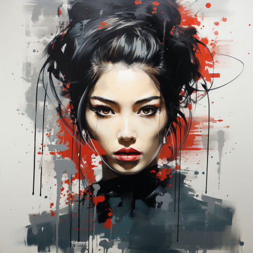 **agressive japanese geisha with a deep stare, stencil, large brush strokes, pop art, black tones with red details, high contrast, --v 5.2 --s 750