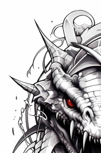 Angry Dinosaur, hip hop style, Ambigram tatoo style, Abstract ink style, Blackwork Geometric, Realism, bandage, madness-inducing, danger atmosphere, abstract expressionism, lyrical abstraction, Symbolism, macabre, surrealizm, Graffuturism, Street Art Sculpture, white background, editorial photography, photorealism, --no skin --ar 2:3 --v 5.2