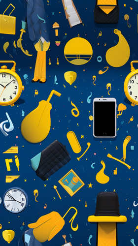 Blue French Horn, Yellow Umbrella, The Playbook, Slap Bet Countdown Timer, Robin Sparkles' Jacket, The Bro Code Book, The Ducky Tie, The Pineapple, Goliath National Bank in the style of kurzgesagt, toycore, ready-made, optimized for amoled display --ar 9:16 --tile --v 5.2