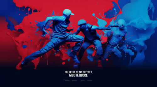 UX/UI design mockup for a break dance association website named Melting Force based in Saint-Etienne. The design should encompass a modern layout with navigation, headers, footers, and content blocks, using the colors blue, red, and white. Elements should include hip-hop vibes like graffiti, silhouettes of dancers, and urban motifs. The look and feel should be reminiscent of designs found on Figma, with a focus on user experience and modern aesthetics. --ar 16:9 --s 150