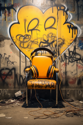 " bulb with headphones " in matching environment, Banksy style , vintage --ar 2:3 --v 5.2 --no person