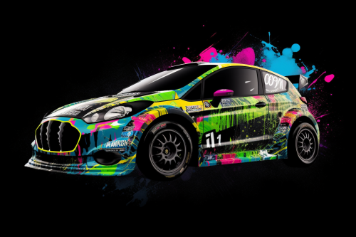 ken block hoonican style tuner car, pop art style, bold colorful brush strokes, wheels spinning, smoke from wheelspin --ar 3:2 --v 5.0