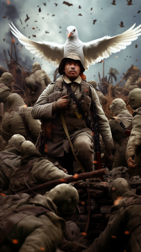 200 allied army men stuck in a trench during world war 1. One pigeon released with a message. Full HD --ar 9:16