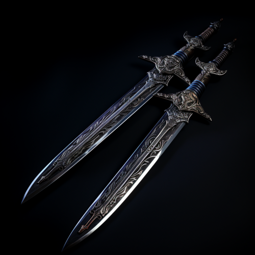 2 war metal swords, one on top another, flat black background --s 250 --v 5.2