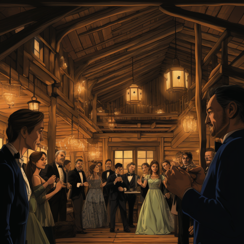 4k image, set in the 1800's , interior of a hunting cabin in the woods, guests at a wedding have become deranged