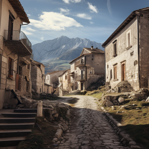 slum in Italian town, orange and purple, hyeronimous bosch style, --ar 7:4