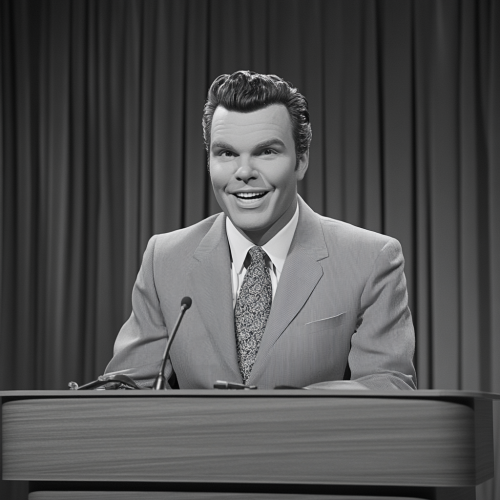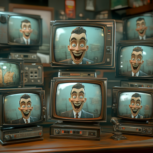 A classic 1950s-style TV host, displayed on various screens throughout the game. The TV Host has a wide, unsettling grin and appears in different angles on multiple TV sets.