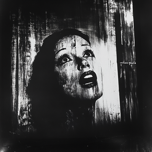 Create an eerie, narrative-rich illustration in Edward Gorey’s signature style, featuring a doll-like rabbit figure in an elongated corridor. The figure, with sleek fishnet attire, stands poised on the staircase landing. Use meticulous cross-hatching to emphasize the shadows, textures, and intricate details in the fishnet pattern and glossy material of the figure's clothing. Render the setting--a dim, old corridor--with fine strokes, capturing the intricate wallpaper patterns and wooden paneling, creating a sense of both elegance and decay. The figure’s expressionless rabbit mask adds a surreal touch, contrasting with her humanlike pose. Use the play of light and shadow to create a sense of depth and mystery within the hallway, as if something ominous lies beyond the frame. Incorporate subtle symbolic elements, such as a ticking clock or a bird silhouette visible through a distant window, suggesting themes of time, confinement, or fleeting freedom. Leave much of the background in shadow or lightly sketched, reinforcing the sense of emptiness and tension. The scene should evoke feelings of both curiosity and discomfort, blending whimsy with unsettling stillness. The overall composition captures Gorey’s distinctive atmosphere--where beauty, melancholy, and mystery coexist in delicate balance.