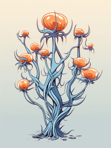 alien succulent tree with claws and tentacles | minimalist | blue orange tone, contrast --ar 3:4