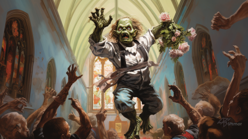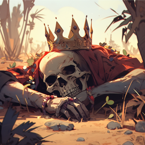 illustrated zombie king waking up from a grave in the desert --s 750 --niji 5