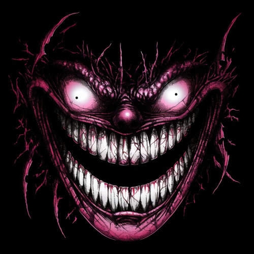solid white background, creepy smile, halloween design, for t-shirt, creepy, scary --niji 5 --s 50