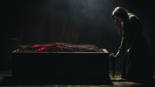 Discovering the Coffin, sharp contrast lighting, shocking, --ar 16:9 --seed 3116063080