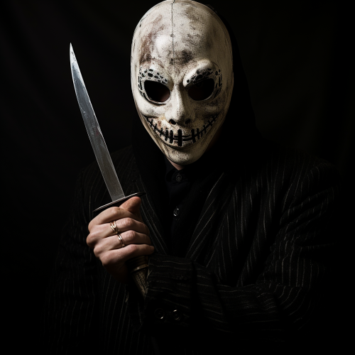 ultra realistic image of a man caring the latern of shape pumpkin that is illuminating, the man is looking scary night scene with a spooky feel with bats --ar 9:16 --v 5.2