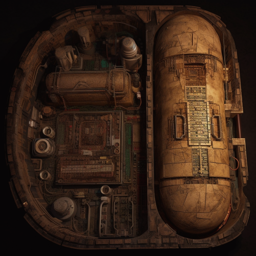 map asset viewed from above, a canopic jar from an egyptian tomb combined with technological circuitry and an organic horror theme similar to Giger, realistic, realism --v 5.0 --upbeta --s 250