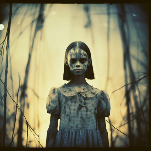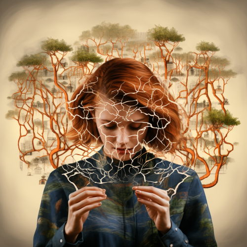woman with hair growing into roots, horror, glitch media collage art, NFT collection --chaos 30