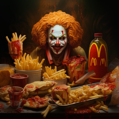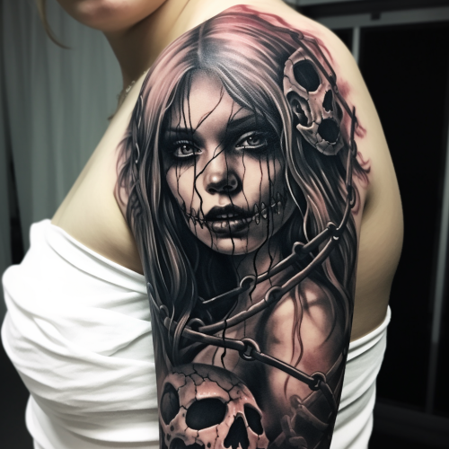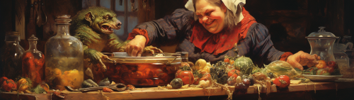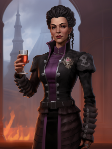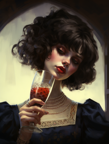 illustration of a female horror villain character drinking a beer, --ar 3:4 --chaos 10 --weird 20
