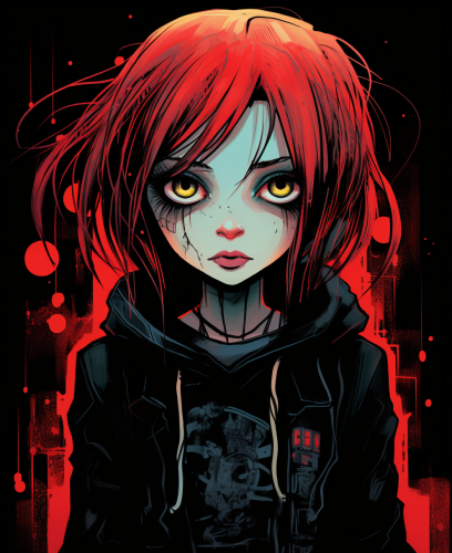 kids illustration, gothic girl, cartoon style, thick line, low detail, gothic colors --ar 9:11