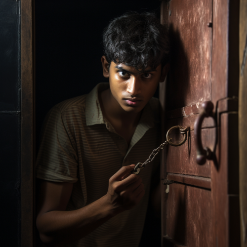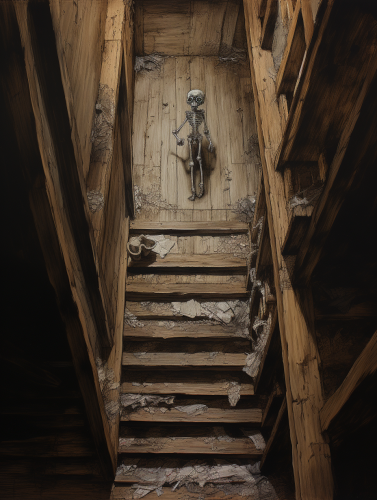 a hidden skeleton under the floorboards --ar 3:4