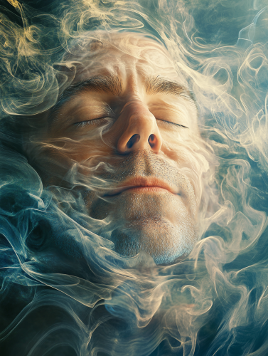 Hyper detailed and photo realistic image ofA patient with epilepsy experiencing a calm moment, brain waves harmonizing and fading into the background, showing relief from seizures thanks to OXETOL treatment. --ar 3:4