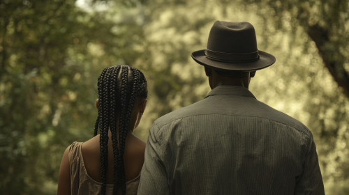 Film still of Samuel L Jackson wearing a fedora walking with a 15 year old black girl in braids, view of them is from behind, depth of field, hyper detailed, sharp focus, highly detailed, ultra realistic texture --ar 16:9 --v 6.1