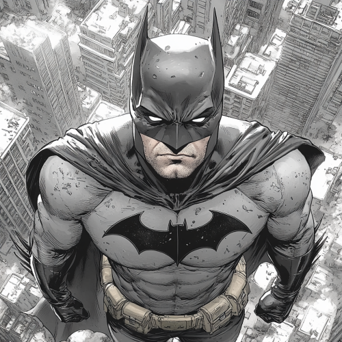 una stampa in linee semplici nero su bianco di batman impegnato a svolgere lavori casalinghi, da fare a contrasto, in verticale v 6.1 --s 750 --style raw