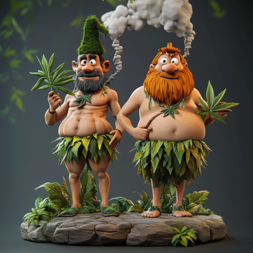 if Fred Flintstone and Barney rubble or marijuana nugget characters smoking marijuana joins Stone age style full body images super ultra realistic details