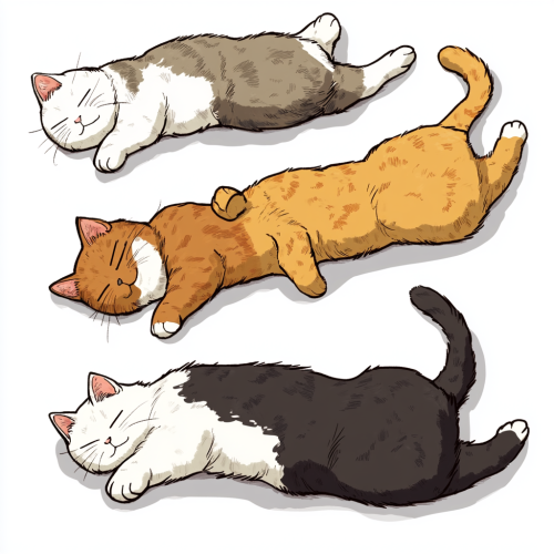 An adult man dressed in pajamas is holding a plastic bottle without a lid in his hand, sitting in bed, next to him lies a young woman sleeping, you can only see her blond hair scattered on the pillow, she is covered up to her neck, on the bed are sleeping 3 cats with their tails standing straight and upright, a cat is standing next to the bed Added with upright tail raised, bedroom background, comic