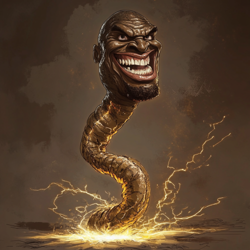 a caricature of shaquille o neal as an electric eel , head of Shaquille, show full body length of an electric eel, sparks coming off him, funny --v 6.1